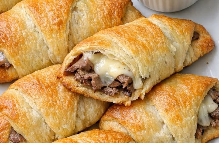 These French Dip Crescent Pockets are a quick, handheld spin on the classic sandwich, delivering bold, savory flavor with minimal effort. Thin slices of roast beef and melted Swiss cheese are tucked inside buttery crescent dough, creating a warm, flaky pocket. Paired with a side of au jus for dipping, they turn a few simple ingredients into a satisfying snack or easy meal. Oven-Baked 4-Ingredient French Dip Crescent Pockets Ingredients 2 cans (8-count each) refrigerated crescent roll dough 3/4 lb thinly sliced deli roast beef 8 slices Swiss cheese, halved 1 (10 1/2 oz) can beef consommé or au jus…
