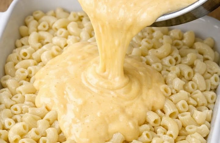 Pour the finished cheese sauce over the pasta and stir gently to coat. Bake for 20–25 minutes, until the edges are bubbling and the center is set.