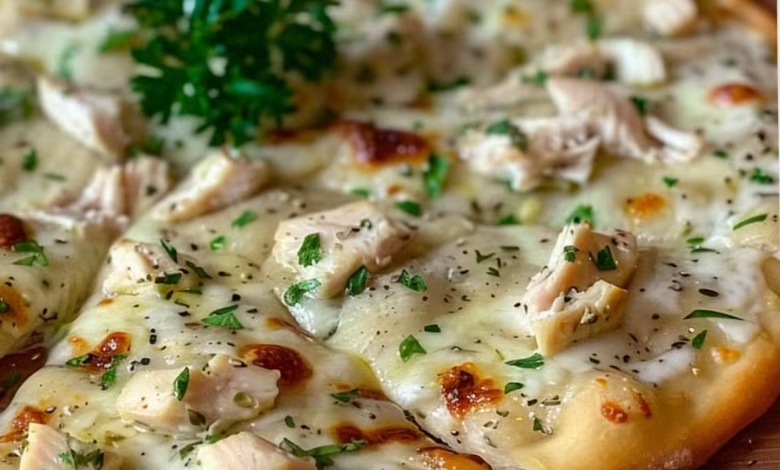 Looking for something warm, cheesy, and a little more refined? This Creamy Roasted Garlic Chicken Pizza hits all the right notes. With a luscious garlic white sauce, tender shredded chicken, and gooey mozzarella atop a crispy golden crust, it’s the kind of meal that feels both comforting and elevated. A final sprinkle of fresh herbs brings brightness, making it a perfect pick for busy nights or casual get-togethers — no takeout required.