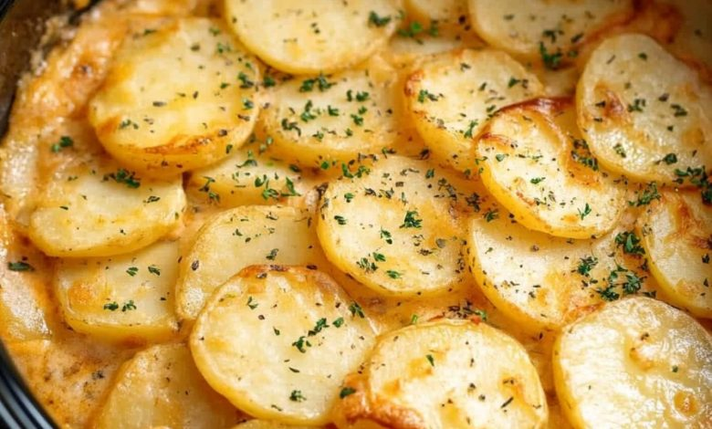 Rich, creamy, and irresistibly cheesy — these Slow Cooker Scalloped Potatoes come together with hardly any effort. Thin layers of tender potatoes simmer gently in a velvety, seasoned cream sauce until perfectly soft and full of flavor.