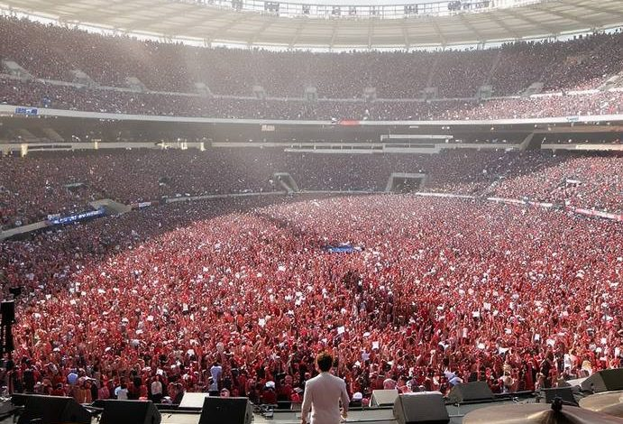 Tens of thousands of people — singing, echoing, cheering in perfect sync. It wasn’t rehearsed. It wasn’t scripted. It was connection, pure and electric.