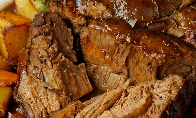 4. Cover the Meat: Pour the sauce evenly over the roast, ensuring the top and sides are well coated.