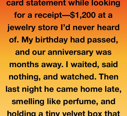 It began with a charge on the credit card—$1,200 at a jewelry store I’d never heard of. My birthday had come and gone. Our anniversary was months away. I tucked the information into the quiet corners of my mind—the place where doubts go to wait.